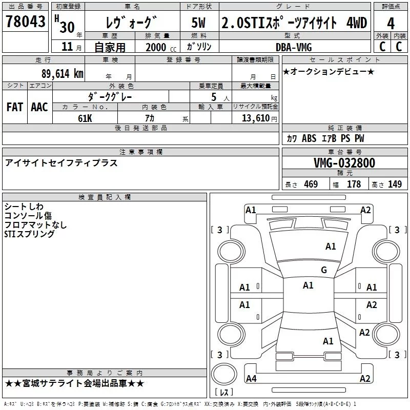 - Комплектация: 2.0STI Sports Eyesite 4WD