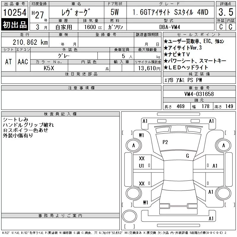 Subaru LEVORG 2015 • 2337213 ₽ под ключ из Японии