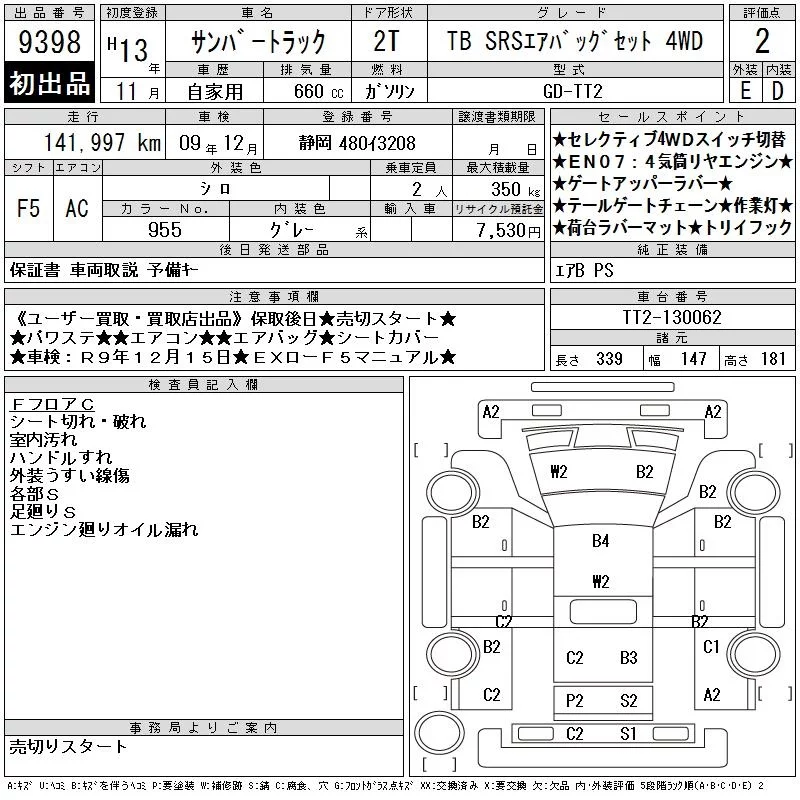 - Комплектация: TB SRSエア Back ゙セット 4WD