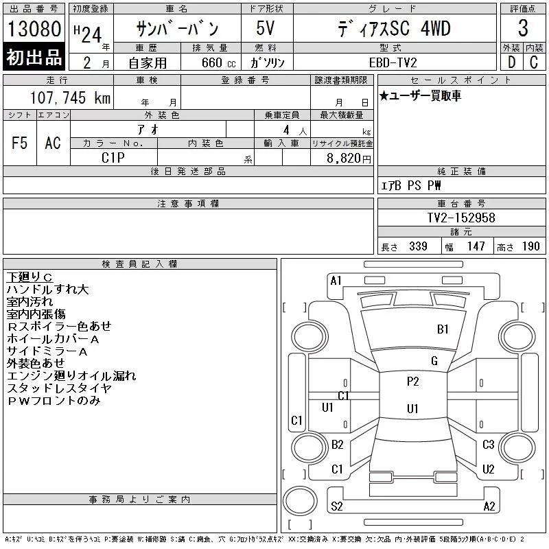 • Комплектация: ディアスSC 4WD