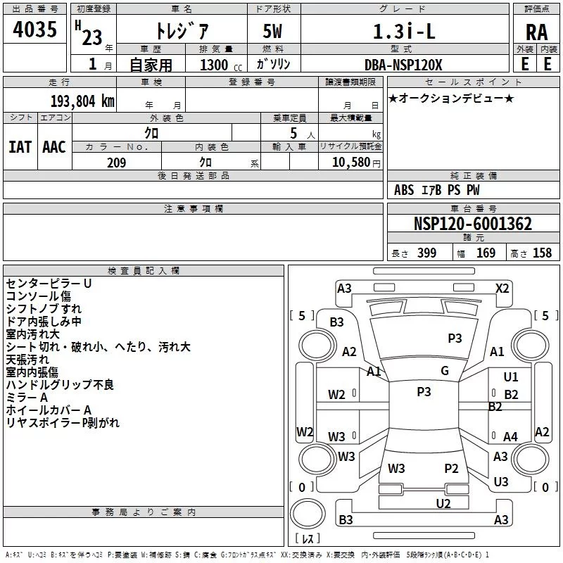 • Кузов: NSP120X