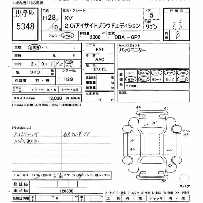 - Комплектация: 4WD 2.0i Eyesite プラウド Edition