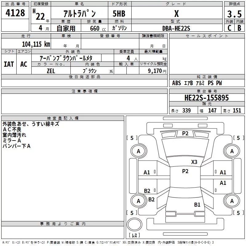 - Кузов: HE22S