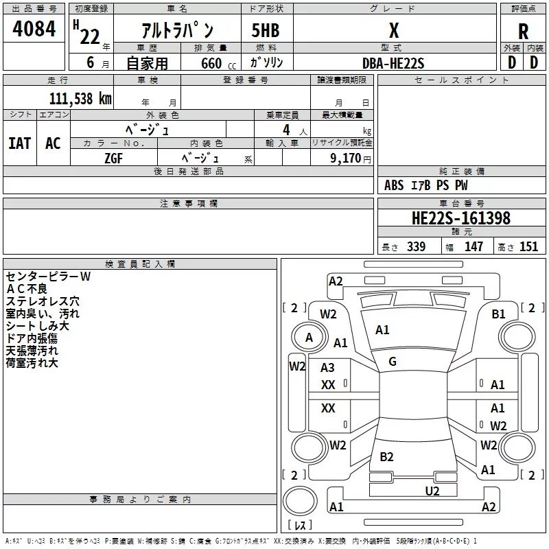 - Кузов: HE22S