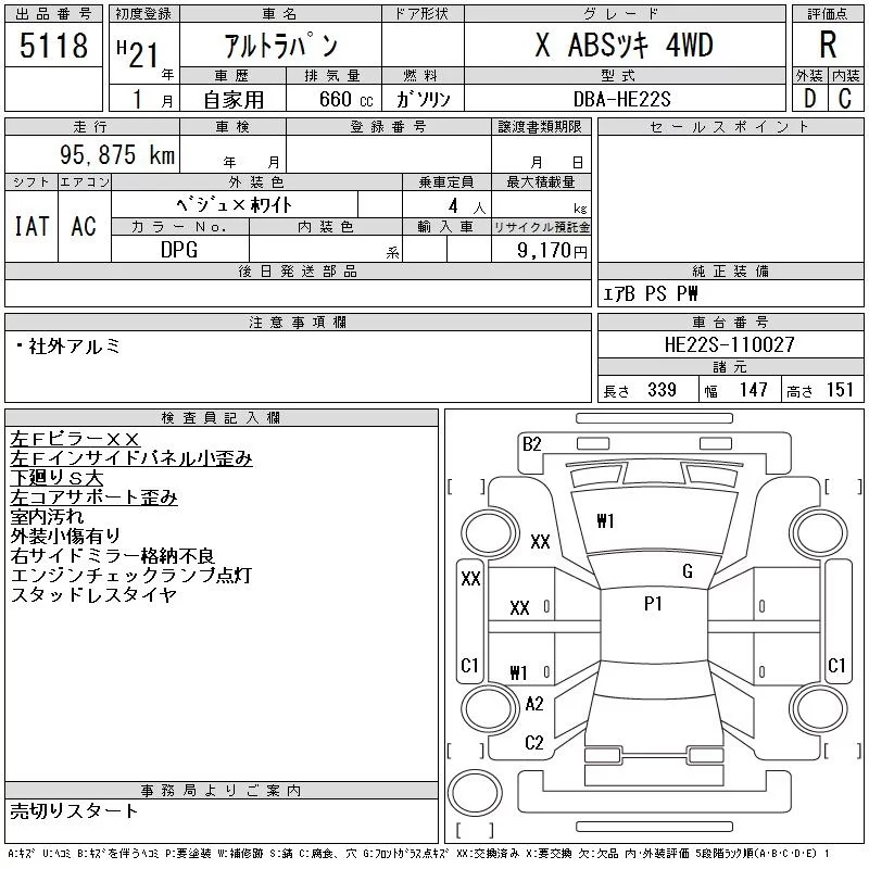 - Комплектация: X ABSツ Key 4WD