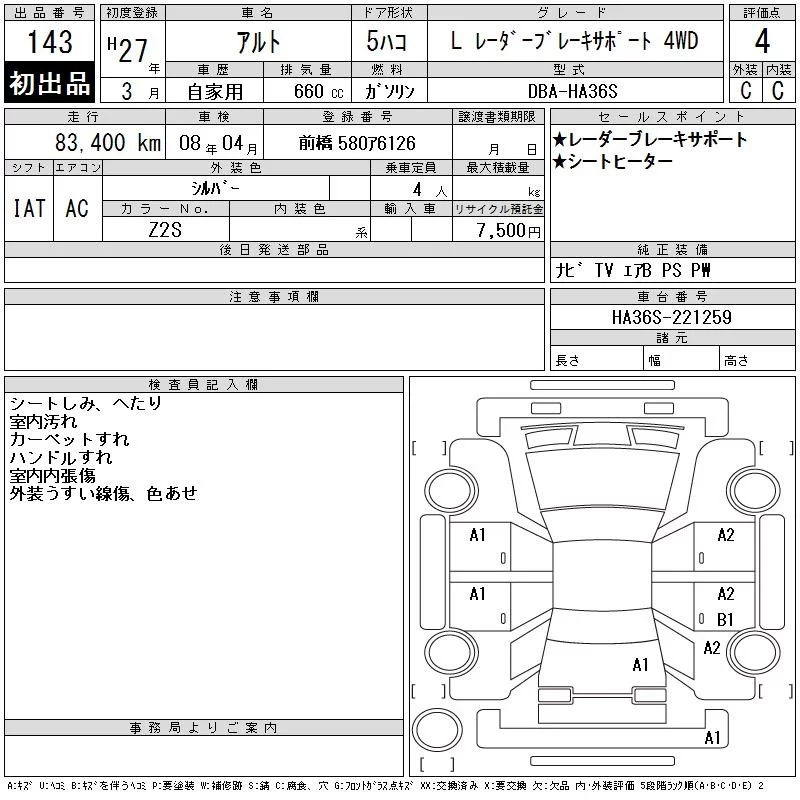 - Комплектация: L Radar -ブレ- Key サポ-ト4WD