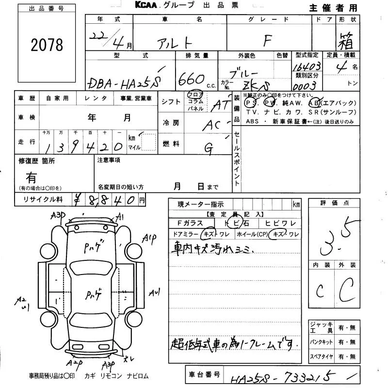 Надёжный авто с проверенного аукциона KCAA Fukuoka