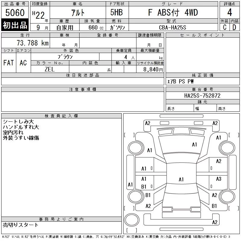- Комплектация: F ABSツ Key 4WD