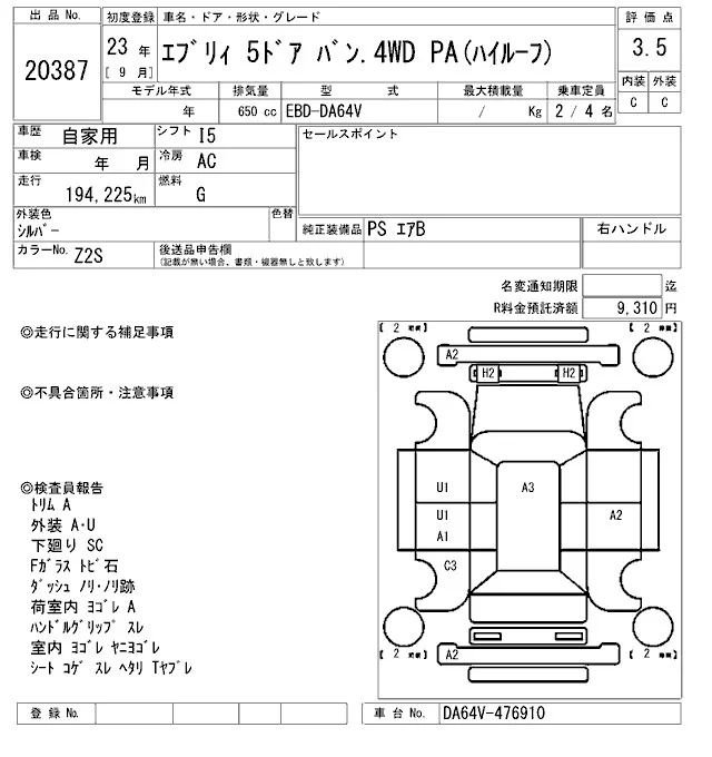 - Кузов: DA64V
