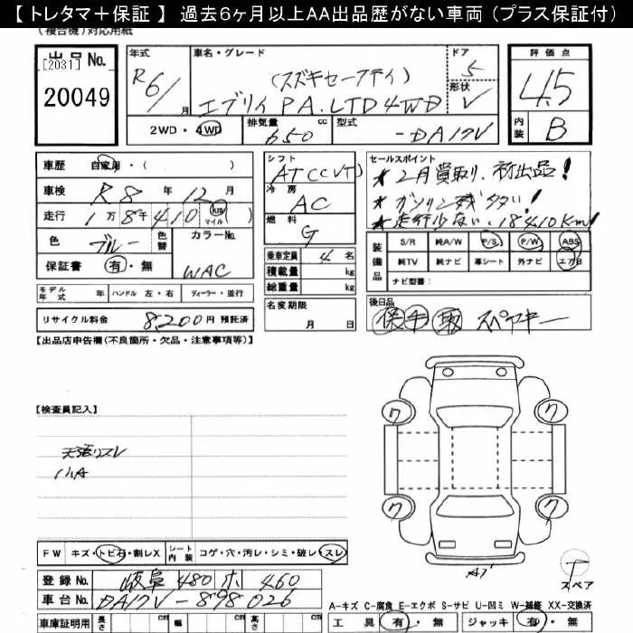 • Комплектация: 4WD PA LTD スズ Key Safety