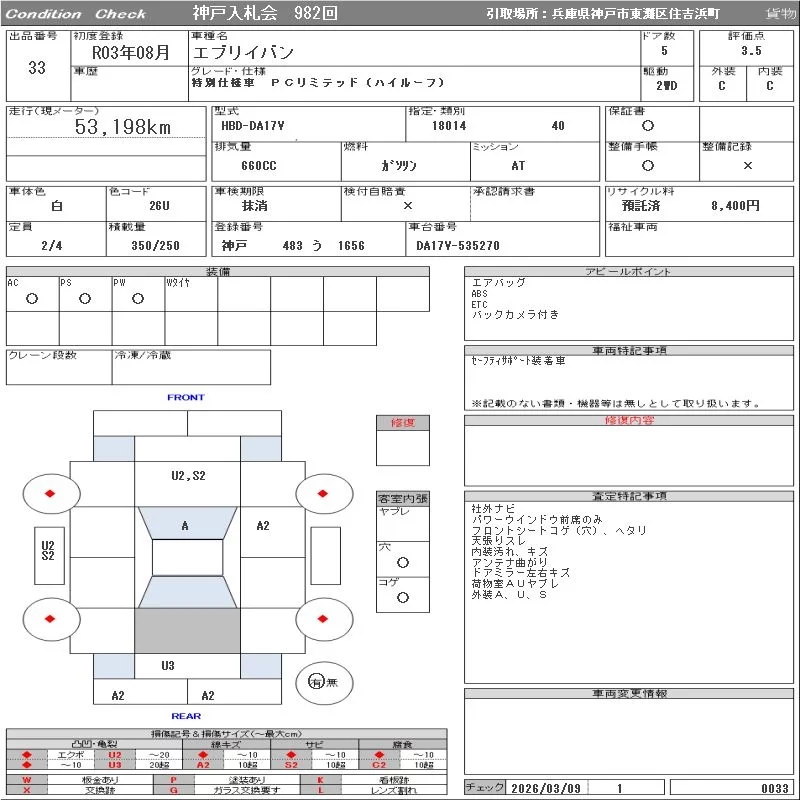 • Комплектация: 特別仕様車 PC Limited ( High roof )