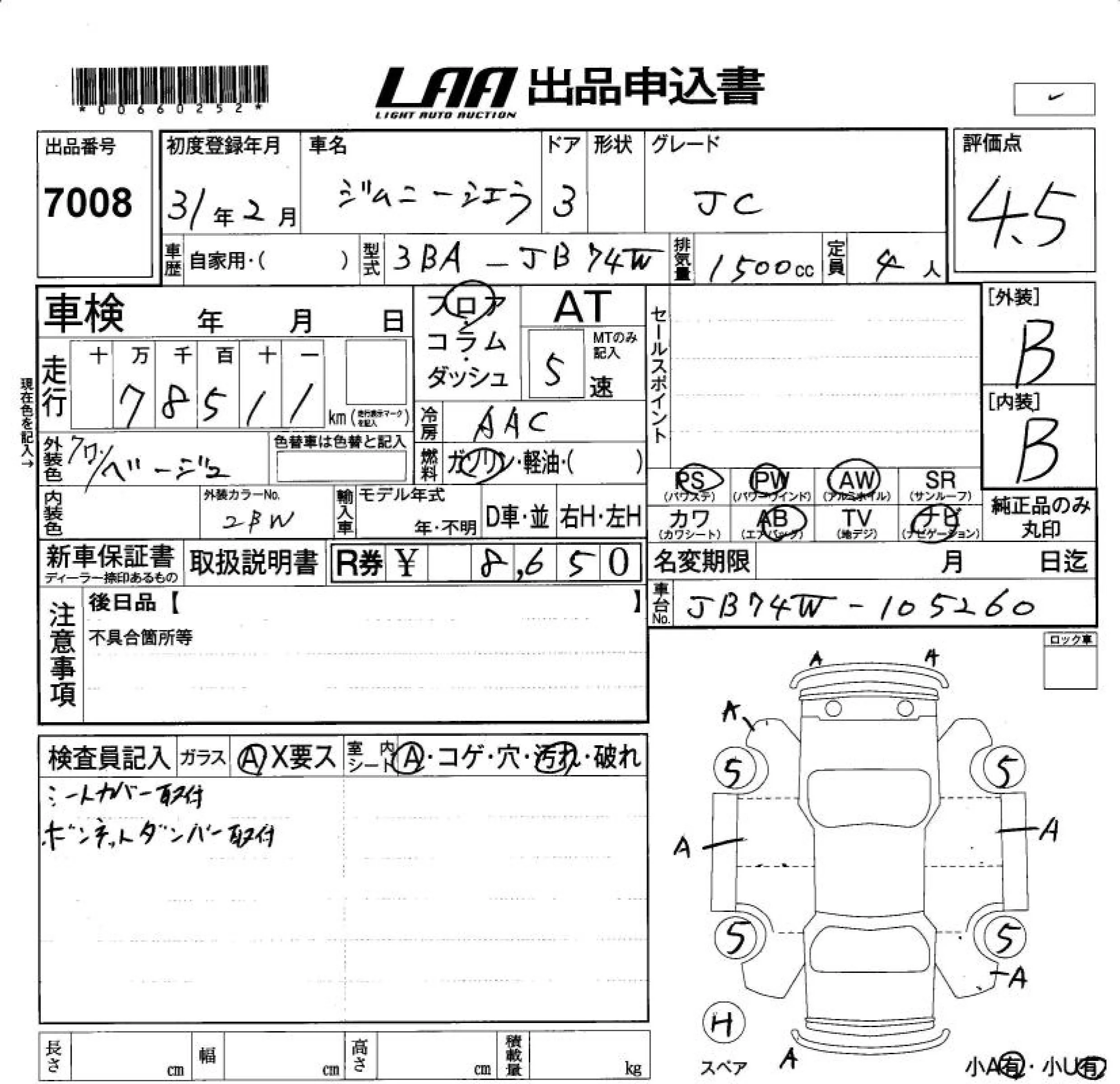 - Кузов: JB74W