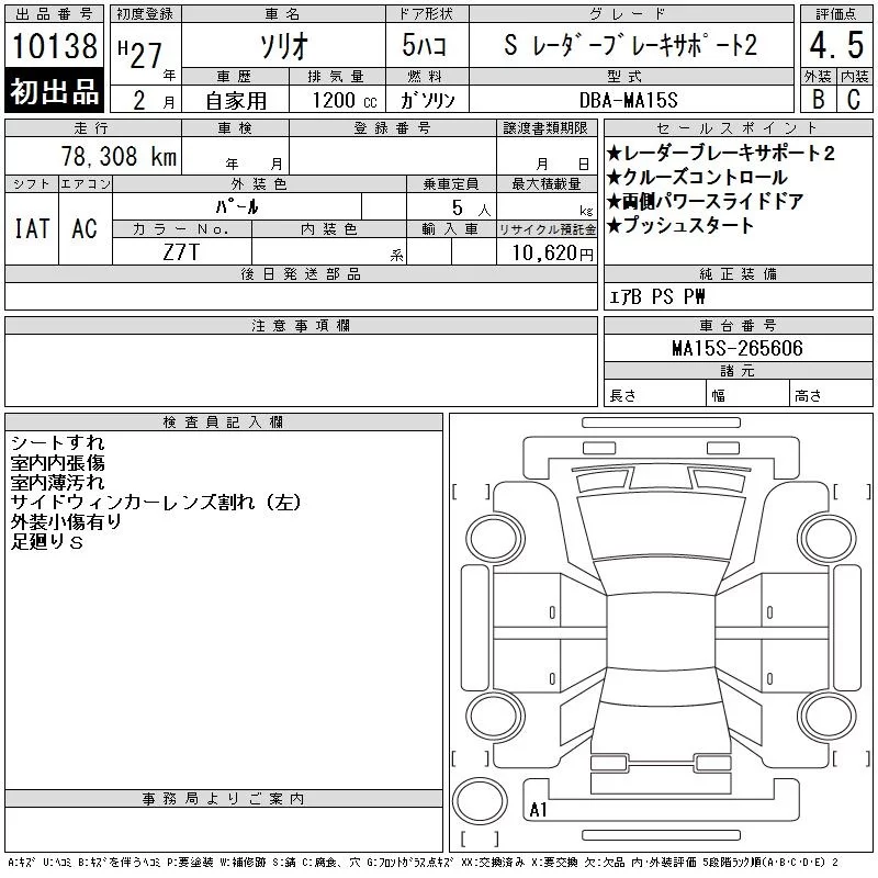 • Комплектация: S Radar -ブレ- Key サポ-ト2