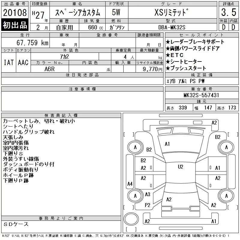 Дополнительными расходами может быть "сверхнормативное" хранение в порту, согласно СВХ "ВАТ": с 6-8 сутки по 1000р, 9-10 сутки по 2000р, с 11 суток по 5000р. Так же, в случае оформления а/м на физ лицо с пропиской не ДВФО, брокер предоставляет либо услугу оформления на ДВ физика стоимостью 20000р или регистрация ФЛ стоимостью 10000р. Вся представленная на сайте информация, касающаяся технических характеристик, наличия на складе, стоимости товаров, носит информационный характер и ни при каких условиях не является публичной офертой, определяемой положениями Статьи 437(2) Гражданского кодекса РФ.