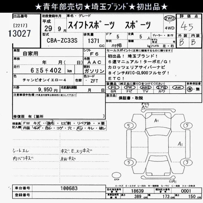 Suzuki SWIFT 2017 • 1332210 ₽ под ключ из Японии