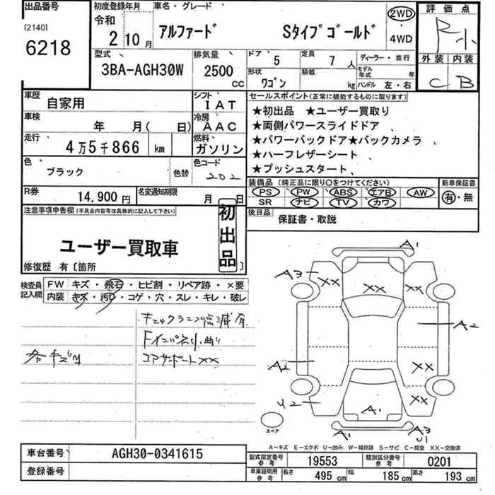 2.5S C PACKAGE | 3BA-AGH35W | 2AR-FE | Full-time 4WD | CVT | 2493cc | 182ps(134kW)/6000rpm | AИ-92 | 4 918 000 | |
