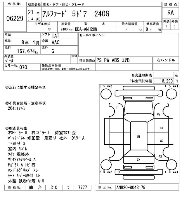 240S LIMITED | DBA-ANH20W | 2AZ-FE | FF | CVT | 2362cc | 170ps(125kW)/6000rpm | AИ-92 | 3 280 000 |