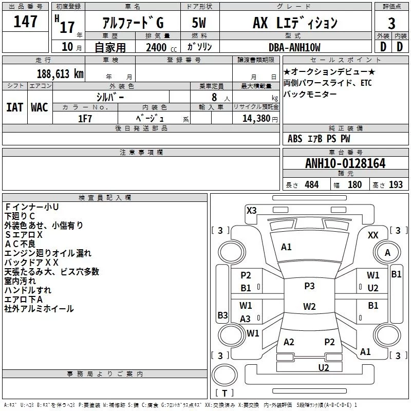 - Кузов: ANH10W