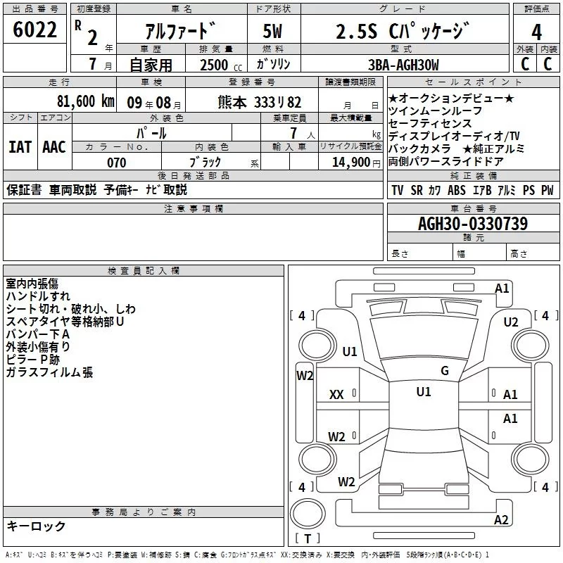 2.5S C PACKAGE | 3BA-AGH35W | 2AR-FE | Full-time 4WD | CVT | 2493cc | 182ps(134kW)/6000rpm | AИ-92 | 4 918 000 | |