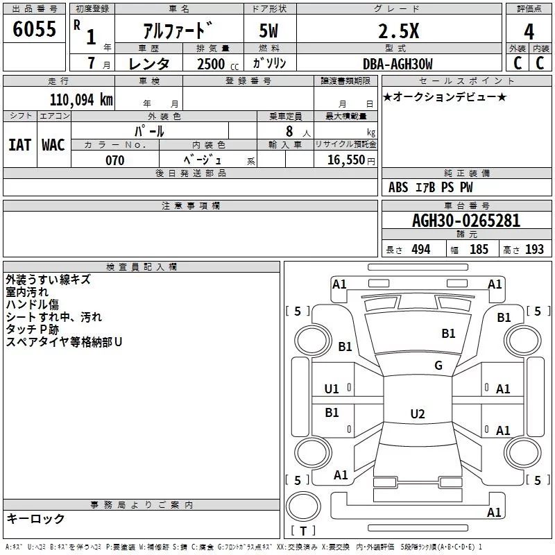 2.5S C PACKAGE | DBA-AGH30W | 2AR-FE | FF | CVT | 2493cc | 182ps(134kW)/6000rpm | AИ-92 | 4 464 900 | |