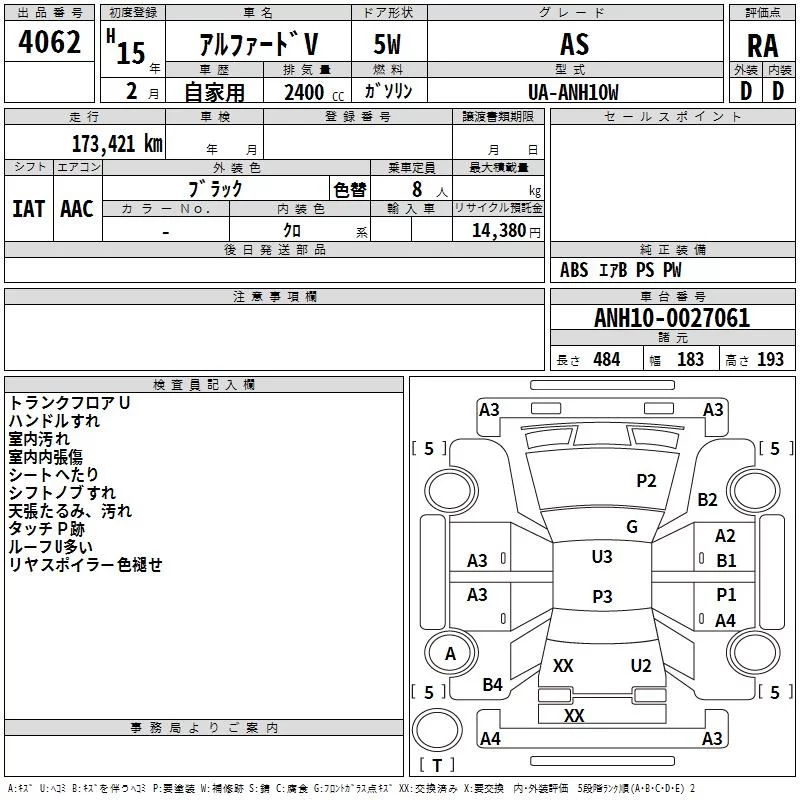 - Кузов: ANH10W