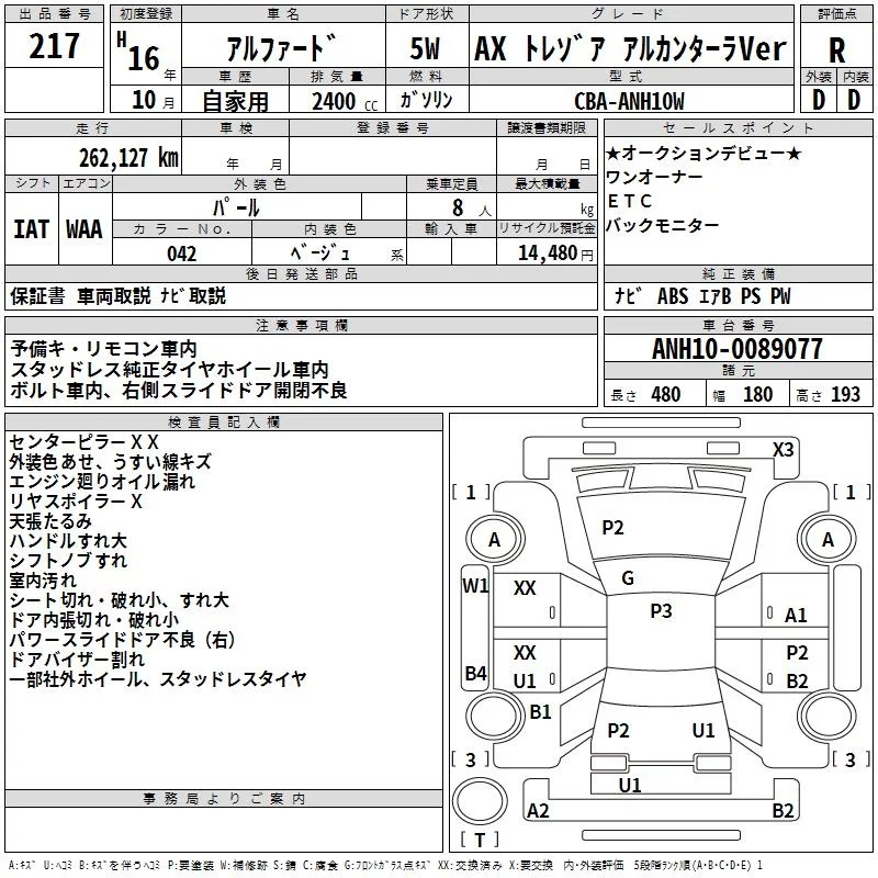 - Кузов: ANH10W