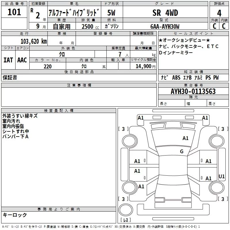 2.5S | 3BA-AGH35W | 2AR-FE | Full-time 4WD | CVT | 2493cc | 182ps(134kW)/6000rpm | AИ-92 | 4 163 000 | |