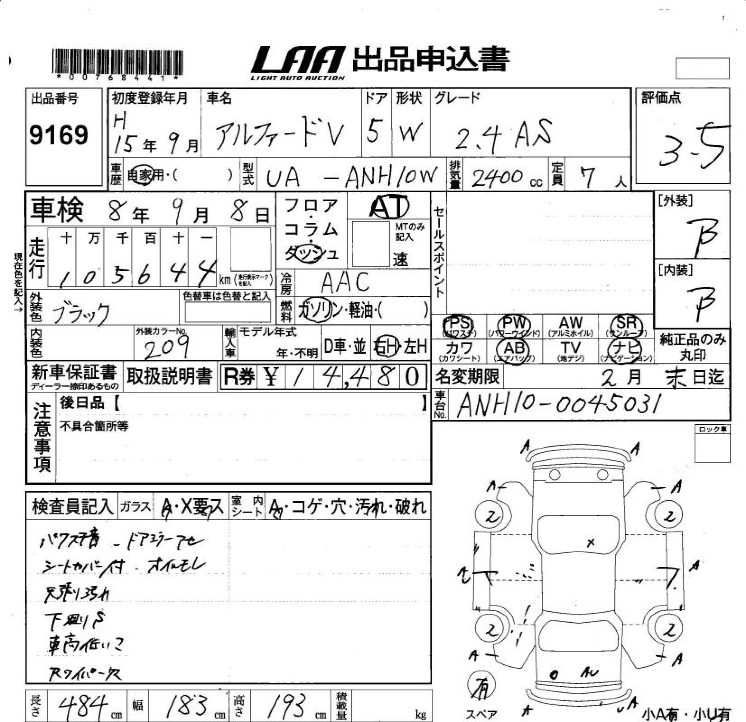 - Кузов: ANH10W