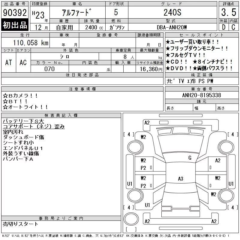 240S PRIME SELECTION II TYPE GOLD II | DBA-ANH20W | 2AZ-FE | FF | CVT | 2362cc | 170ps(125kW)/6000rpm | AИ-92 | 3 560 000 |