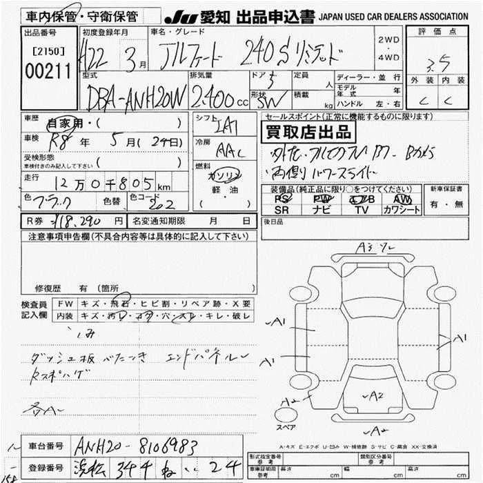 • Кузов: ANH20W