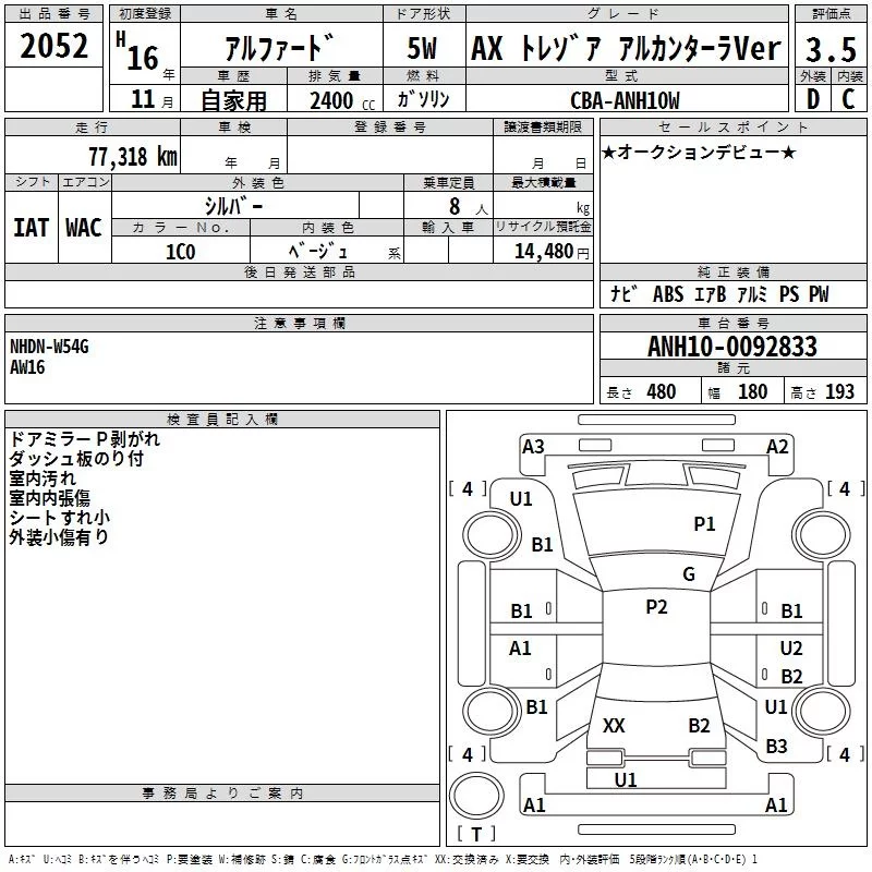 - Комплектация: AX トレゾア Alcantara Ver
