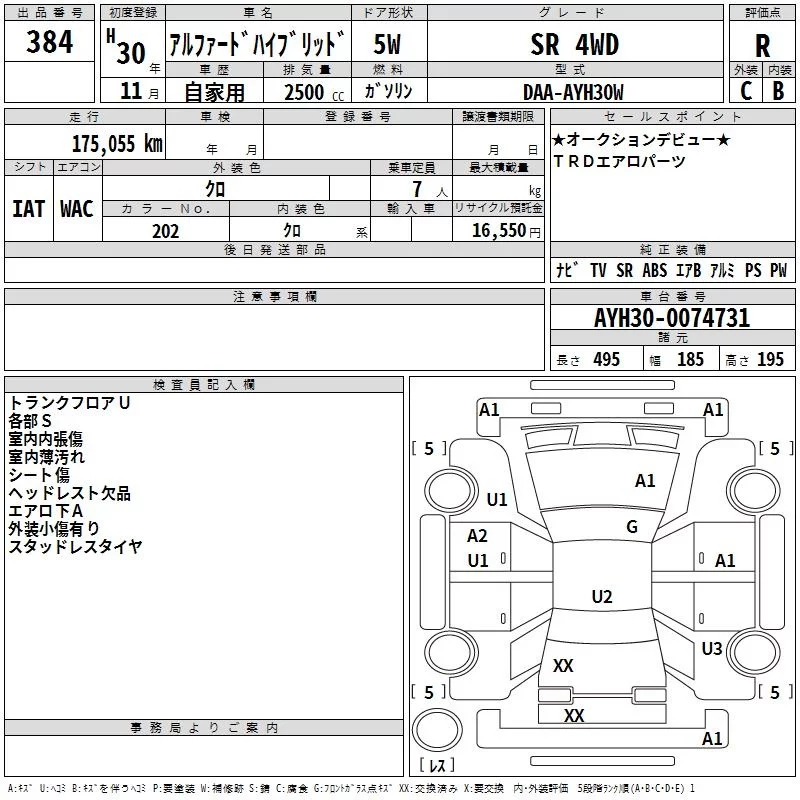 2.5S C PACKAGE | DBA-AGH35W | 2AR-FE | Full-time 4WD | CVT | 2493cc | 182ps(134kW)/6000rpm | AИ-92 | 4 611 600 | |