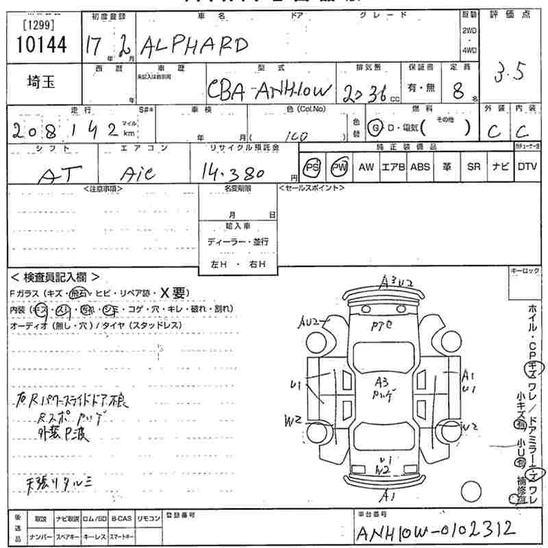 - Кузов: ANH10W