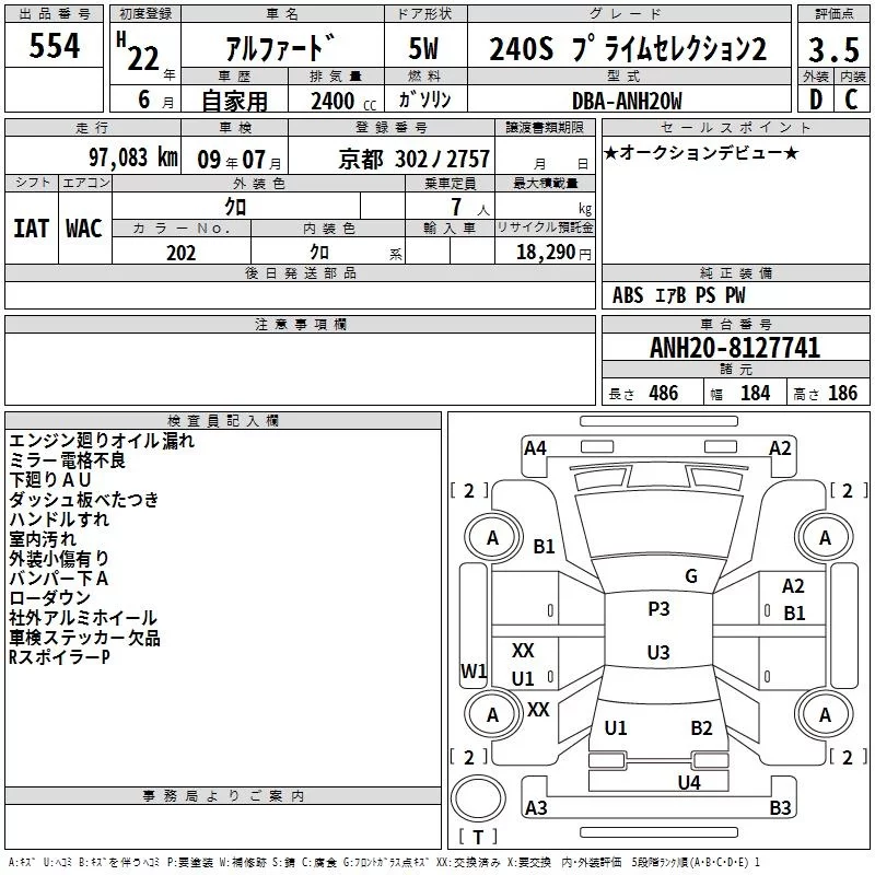 240S PRIME SELECTION II TYPE GOLD | DBA-ANH25W | 2AZ-FE | Full-time 4WD | CVT | 2362cc | 170ps(125kW)/6000rpm | AИ-92 | 3 740 000 | |