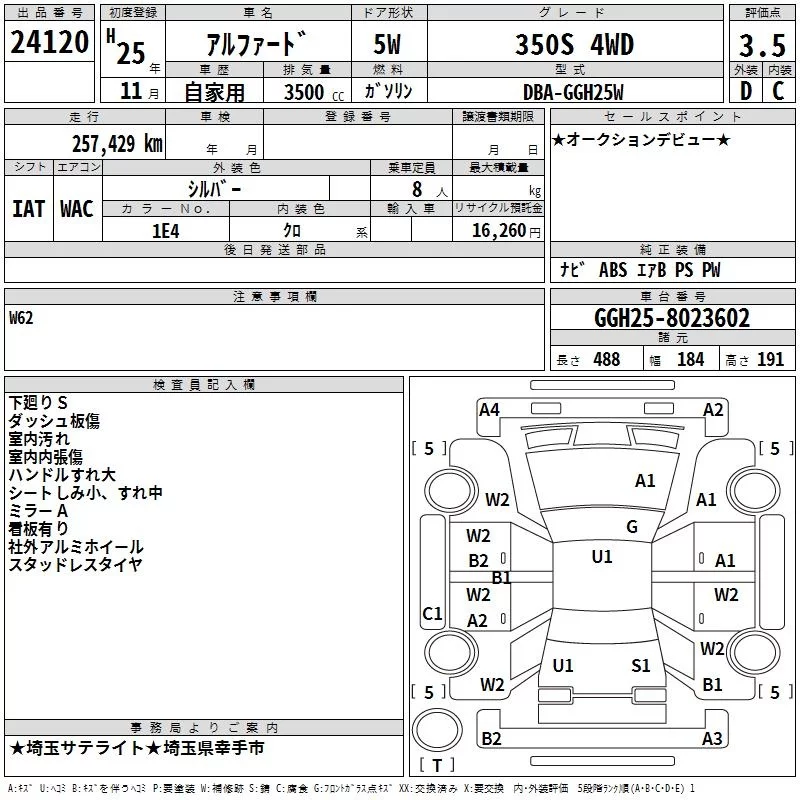 350S TYPE GOLD II | DBA-GGH25W | 2GR-FE | Full-time 4WD | 6AT | 3456cc | 280ps(206kW)/6200rpm | AИ-95 | 4 259 000 | |
