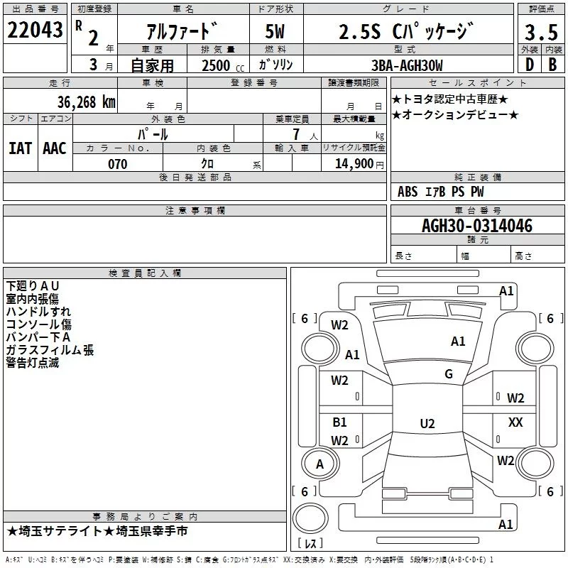 2.5S | 3BA-AGH35W | 2AR-FE | Full-time 4WD | CVT | 2493cc | 182ps(134kW)/6000rpm | AИ-92 | 4 163 000 | |