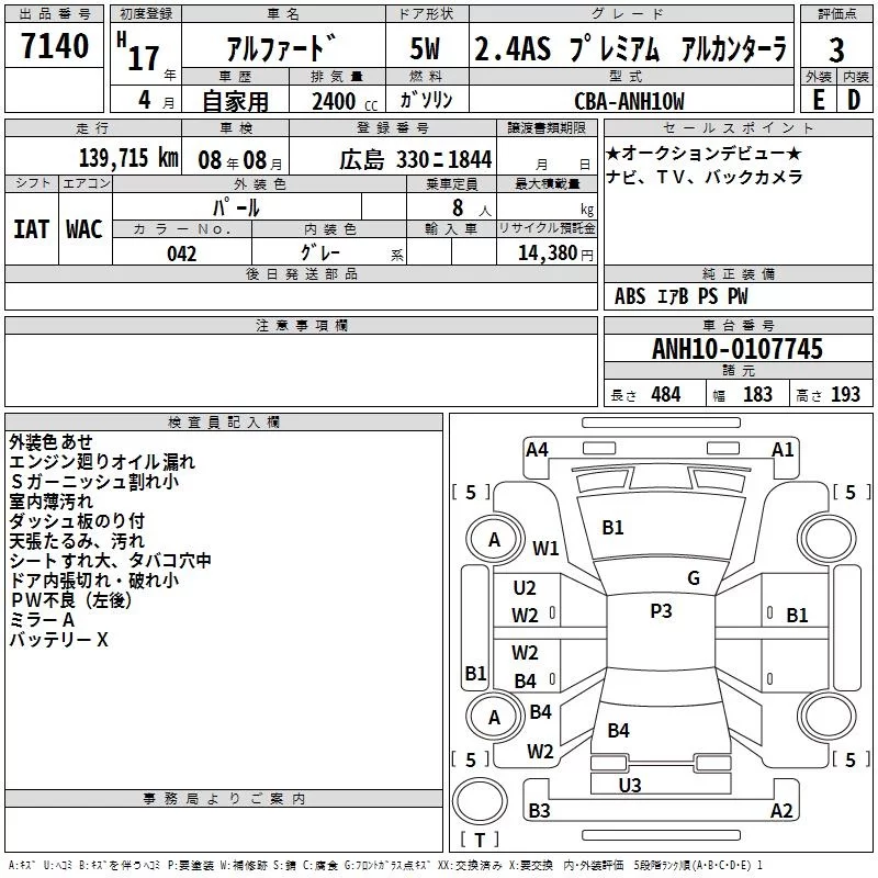 - Кузов: ANH10W