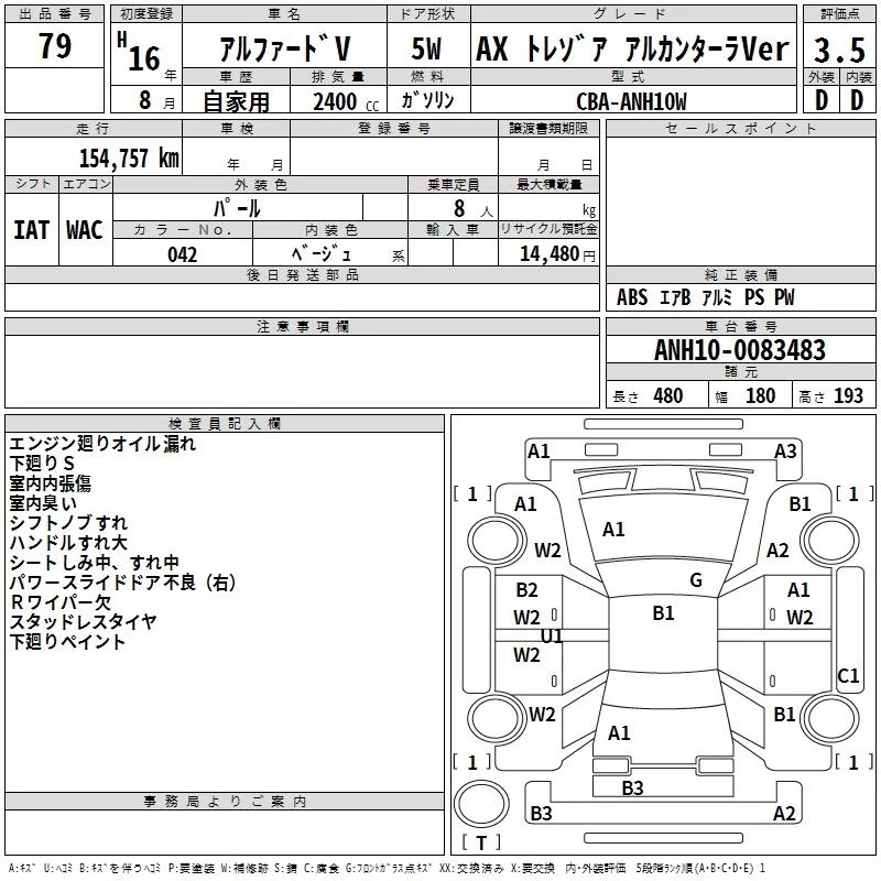 - Кузов: ANH10W