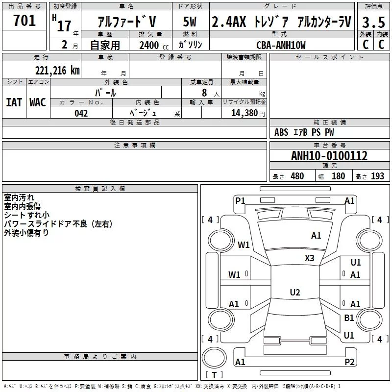 - Комплектация: AX トレゾア Alcantara Ver