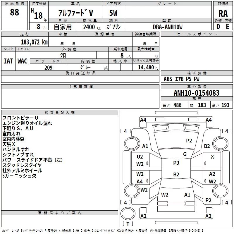 - Кузов: ANH10W