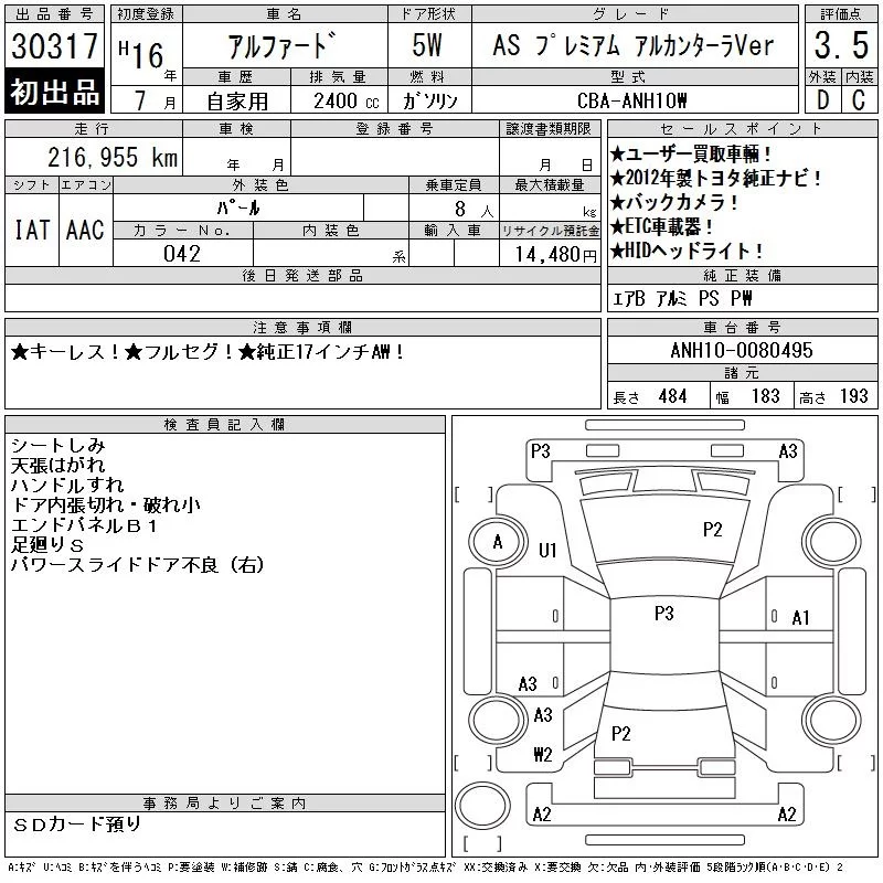 - Кузов: ANH10W