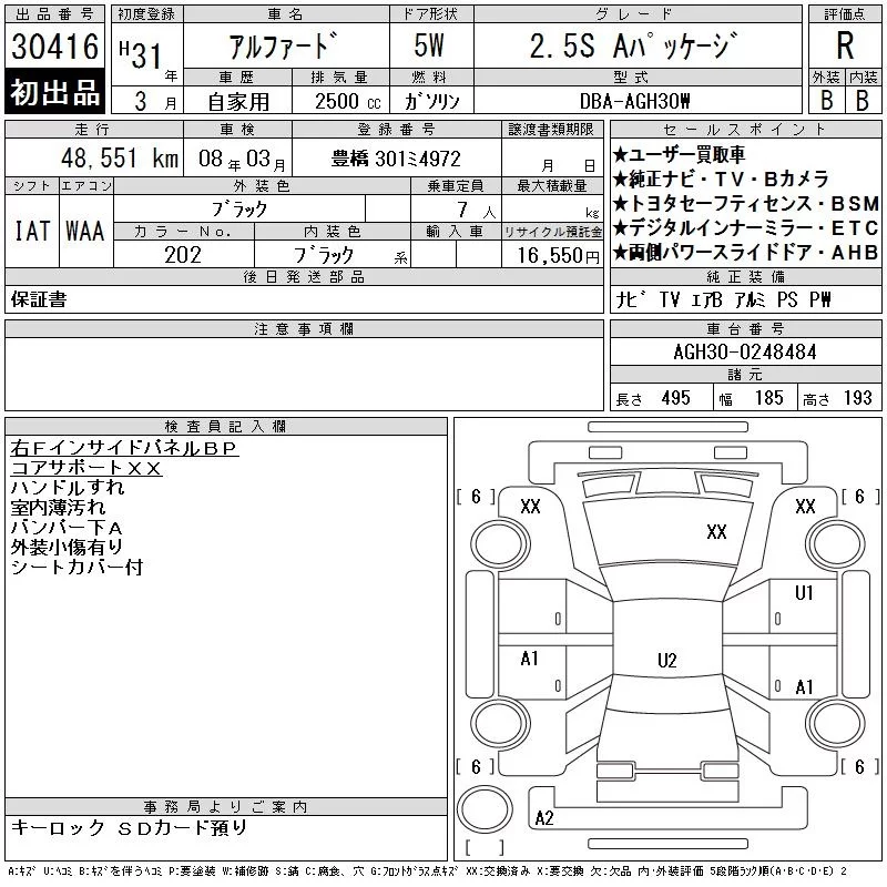 2.5X | DBA-AGH30W | 2AR-FE | FF | CVT | 2493cc | 182ps(134kW)/6000rpm | AИ-92 | 3 438 600 |