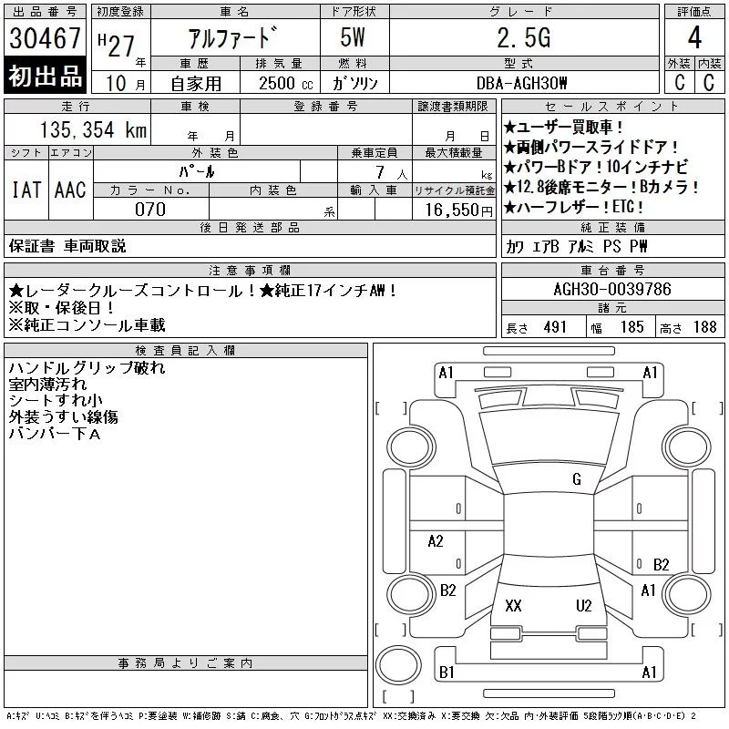 2.5S A PACKAGE | DBA-AGH35W | 2AR-FE | Full-time 4WD | CVT | 2493cc | 182ps(134kW)/6000rpm | AИ-92 | 4 004 837 | |