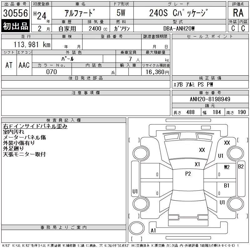 240S TYPE GOLD | DBA-ANH25W | 2AZ-FE | Full-time 4WD | CVT | 2362cc | 170ps(125kW)/6000rpm | AИ-92 | 3 859 000 | |