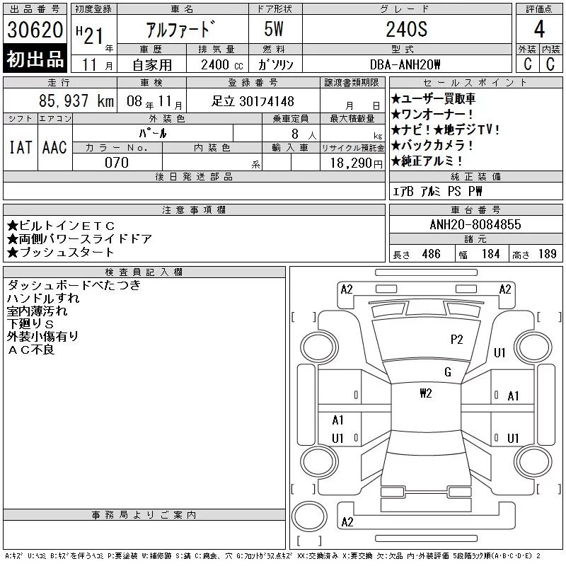 240S LIMITED | DBA-ANH25W | 2AZ-FE | Full-time 4WD | CVT | 2362cc | 170ps(125kW)/6000rpm | AИ-92 | 3 490 000 | |