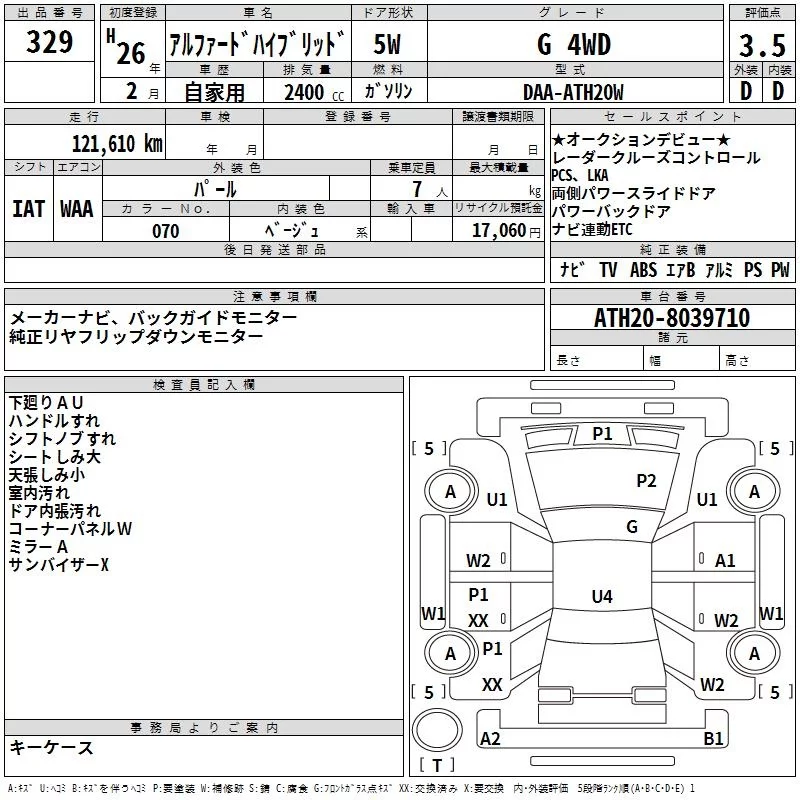240G | DBA-ANH25W | 2AZ-FE | Full-time 4WD | CVT | 2362cc | 170ps(125kW)/6000rpm | AИ-92 | 3 916 800 | |