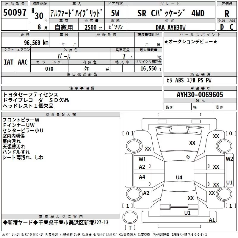 2.5G | DBA-AGH35W | 2AR-FE | Full-time 4WD | CVT | 2493cc | 182ps(134kW)/6000rpm | AИ-92 | 4 468 000 | |