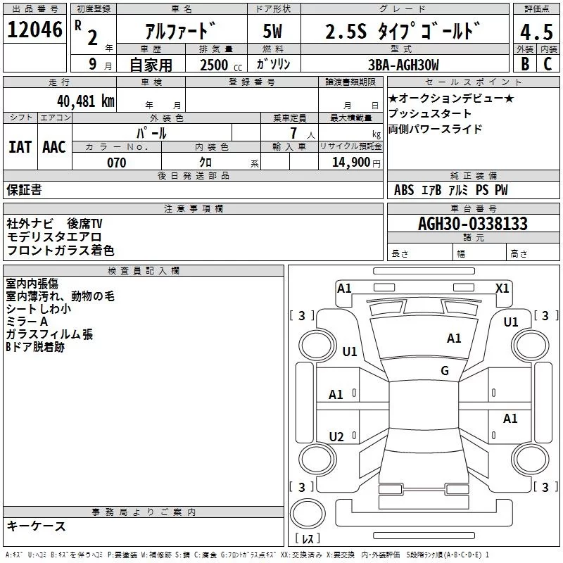 2.5S TYPE GOLD | 3BA-AGH35W | 2AR-FE | Full-time 4WD | CVT | 2493cc | 182ps(134kW)/6000rpm | AИ-92 | 4 495 000 | |