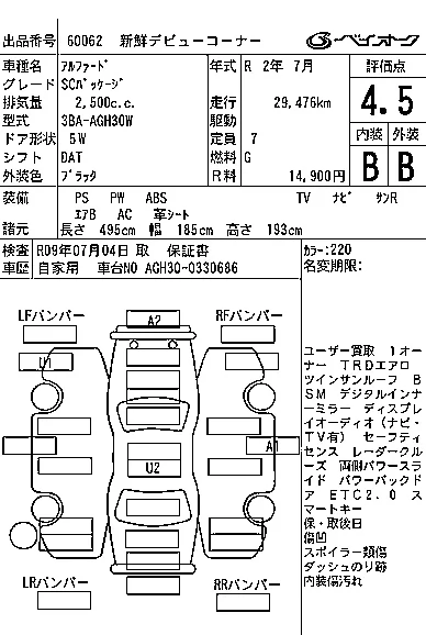 2.5S | 3BA-AGH35W | 2AR-FE | Full-time 4WD | CVT | 2493cc | 182ps(134kW)/6000rpm | AИ-92 | 4 163 000 | |