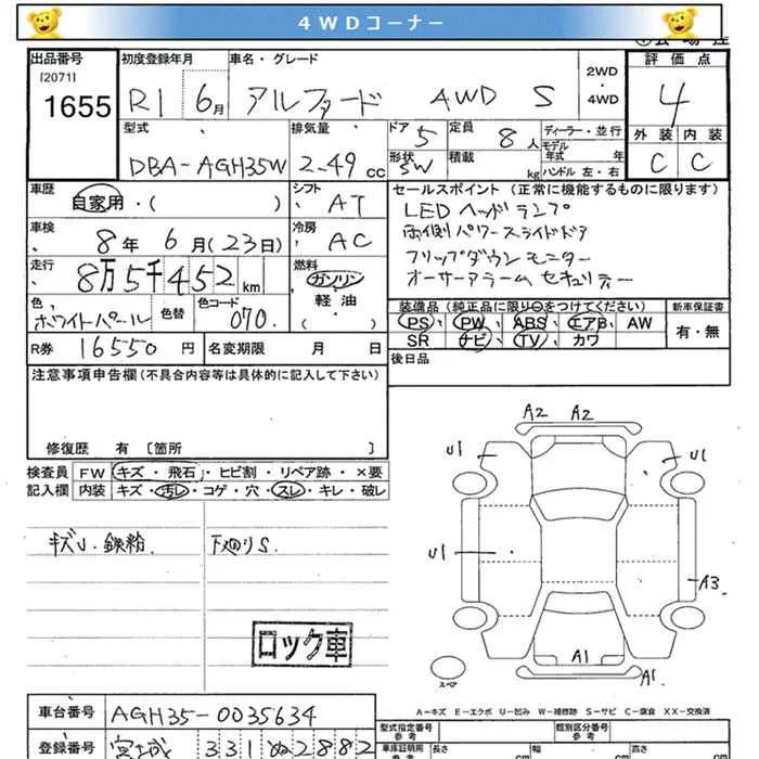 2.5S A PACKAGE | DBA-AGH35W | 2AR-FE | Full-time 4WD | CVT | 2493cc | 182ps(134kW)/6000rpm | AИ-92 | 4 253 700 | |